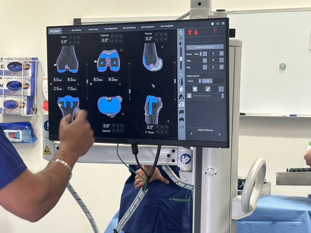 Robotic-assisted technology helps support precise planning and implant positioning during knee replacement surgery.